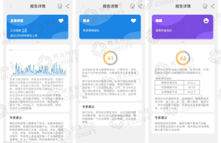 让我们整个脑部情绪等状态可视化、精细化、系统化,对于“抑郁症”起到非常有效的防范和觉察作用。当我们这些数据出现问题的时候,系统也可以即时地给出一整套改善训练的建议。